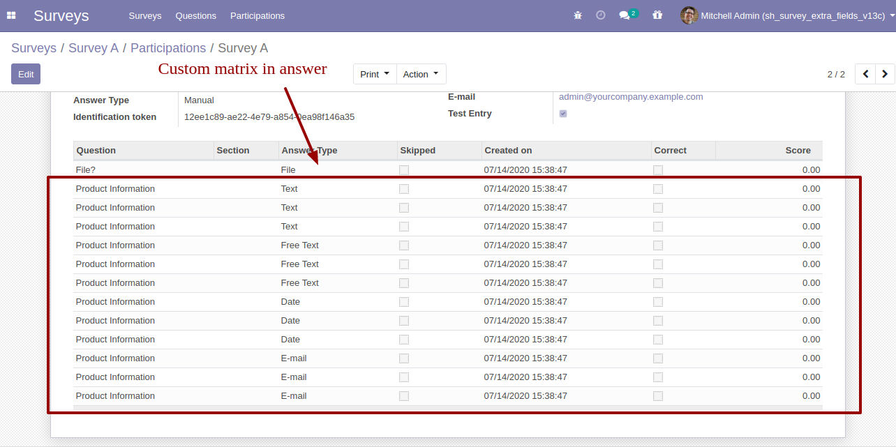 The custom matrix in the answer list view.