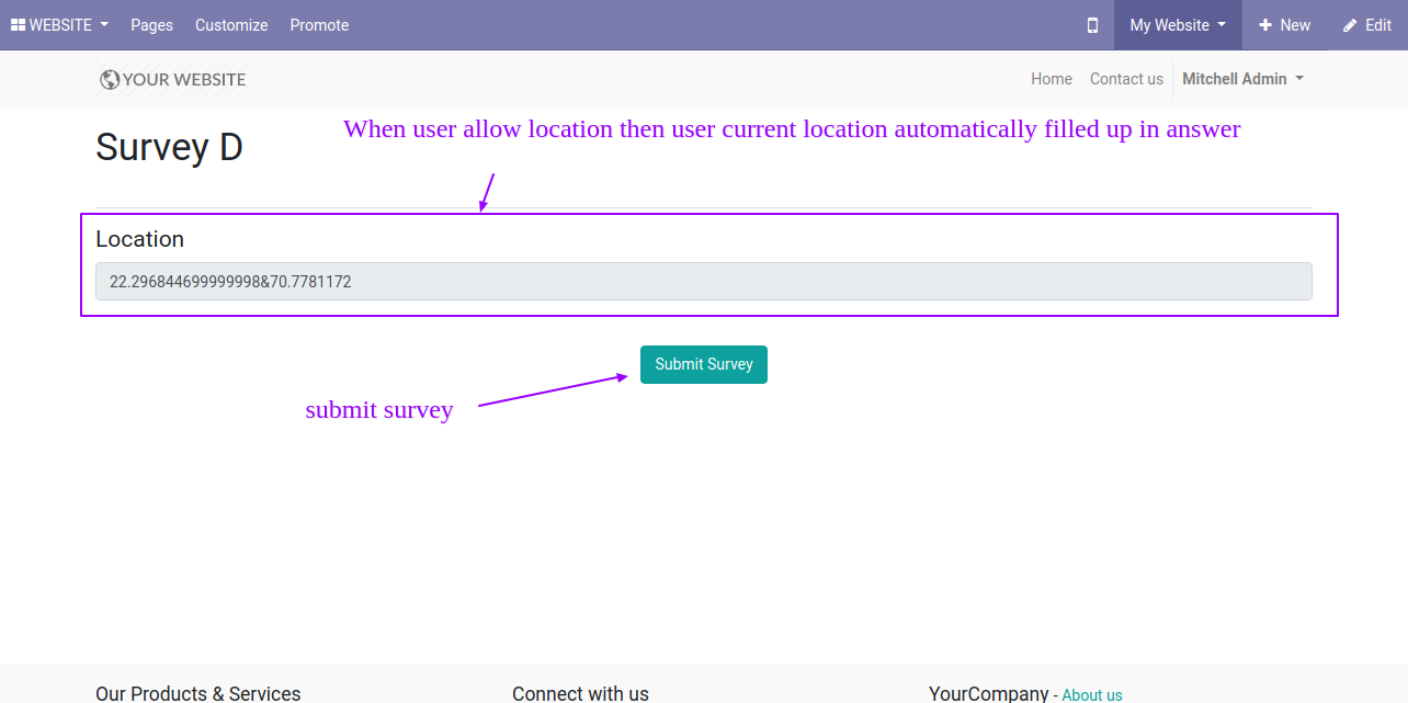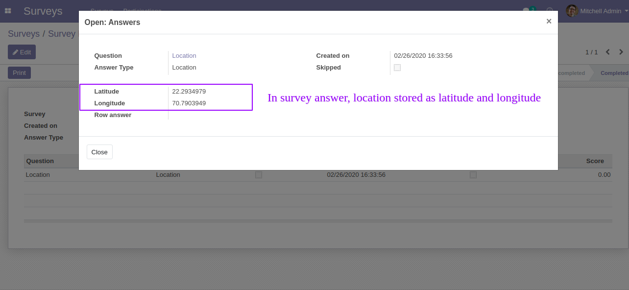 After press "Submit Survey" Location Field in backed looks like below.