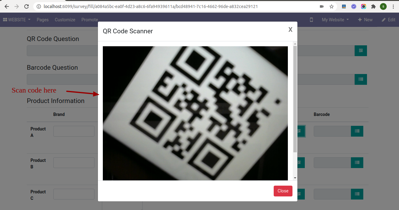 Scan QRCode from wizard after successfully scanning it will automatically close that.