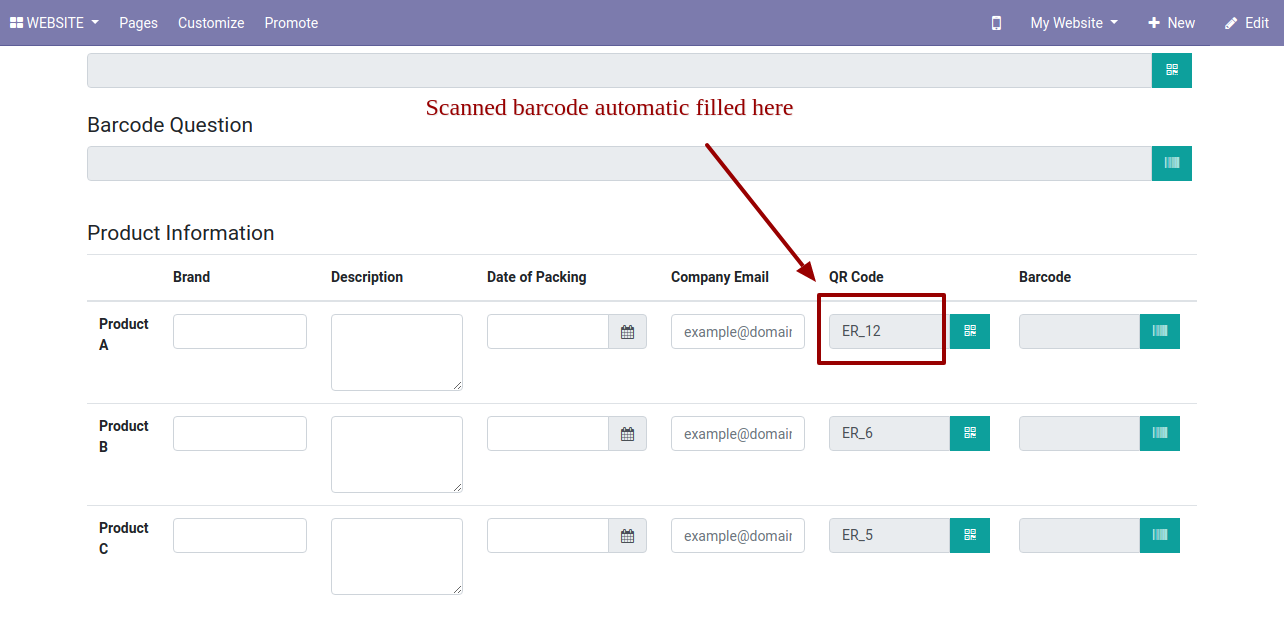 Scanned QRCode auto-filled.