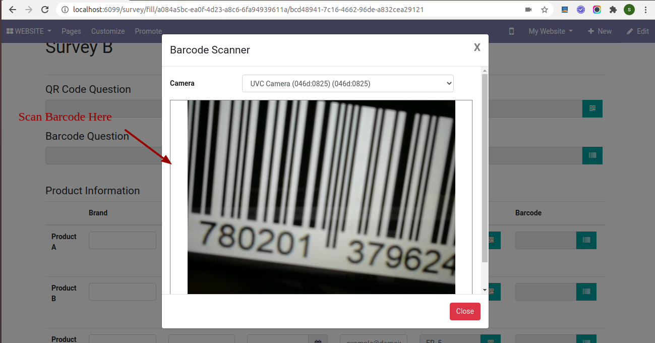 After press "Submit Survey" it stores Barcode in the survey, Barcode Field in backed looks like below.