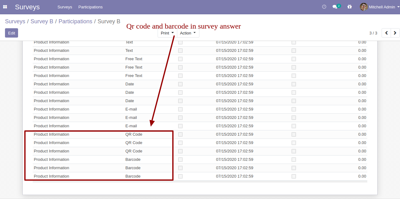 Barcode answer in the survey matrix.