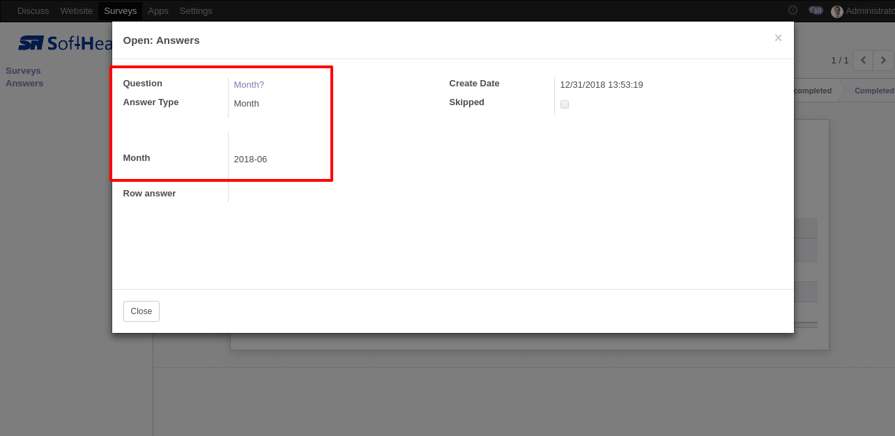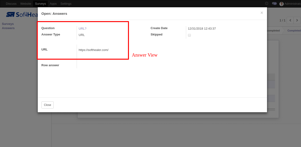 The question-answer 1 form view.