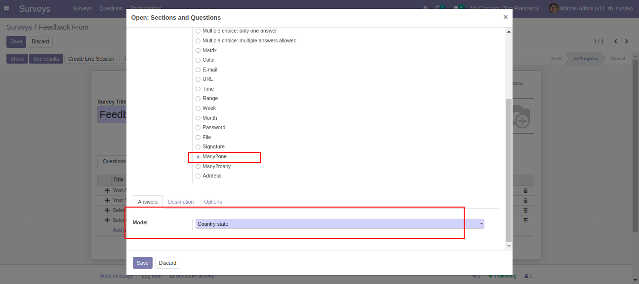 Many2one Field.