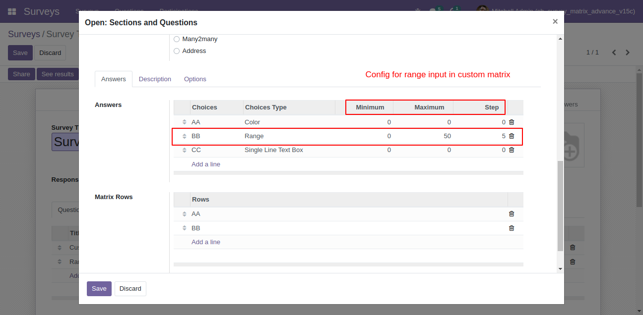 Range input in custom matrix.