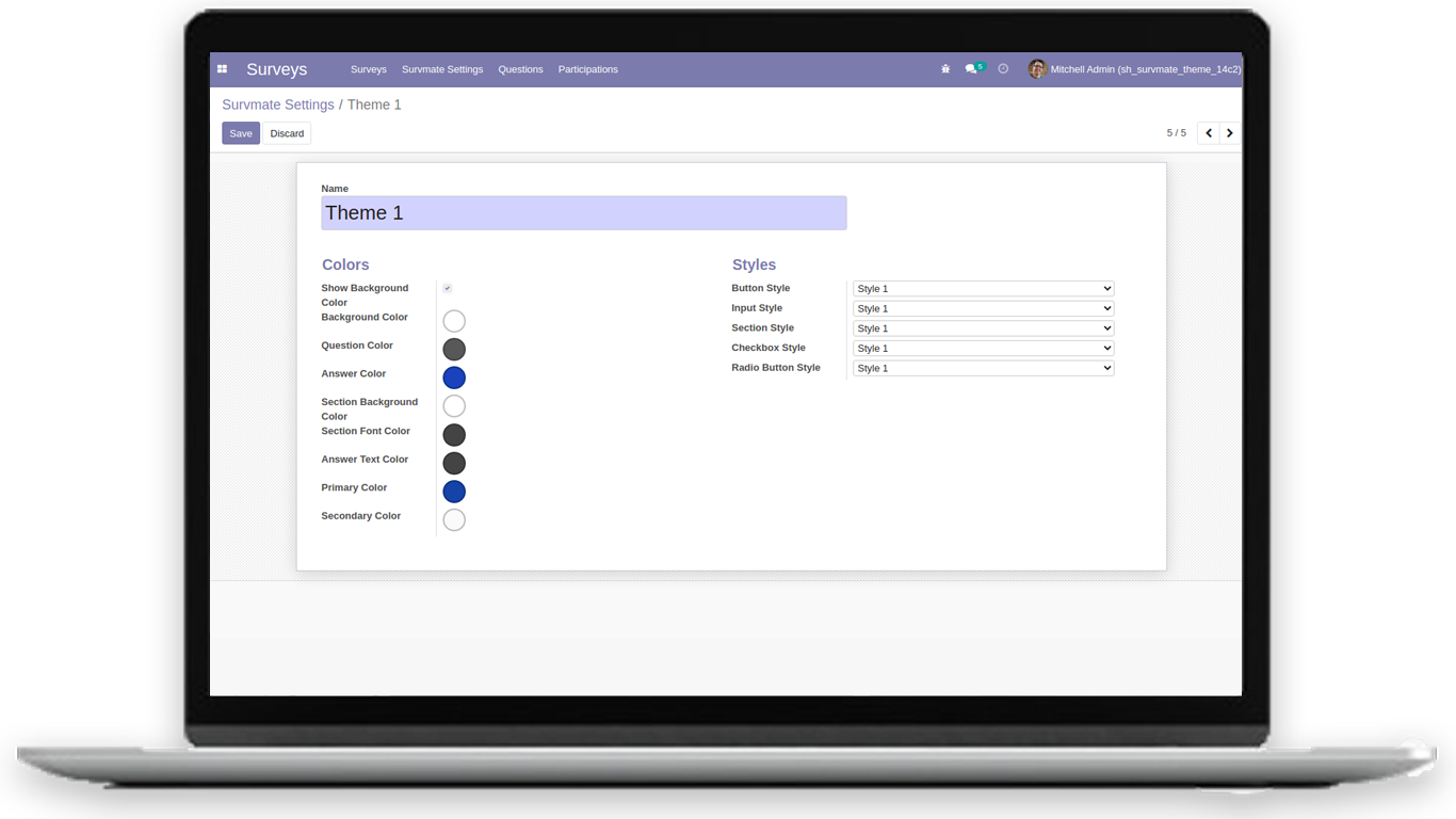 You can set your primary and secondary color from as per theme color so your survey form will look more attractive.