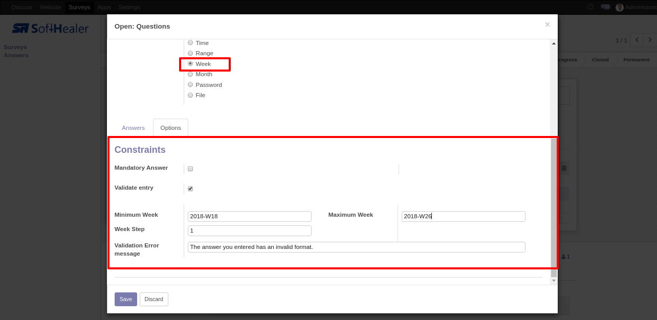 Week Field in backed.