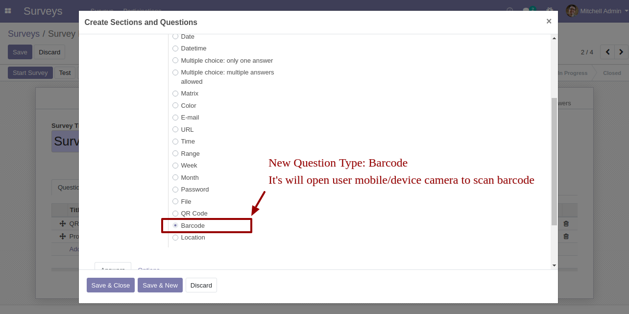 New question type added: Barcode, it scans Barcode by camera.