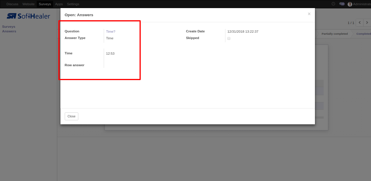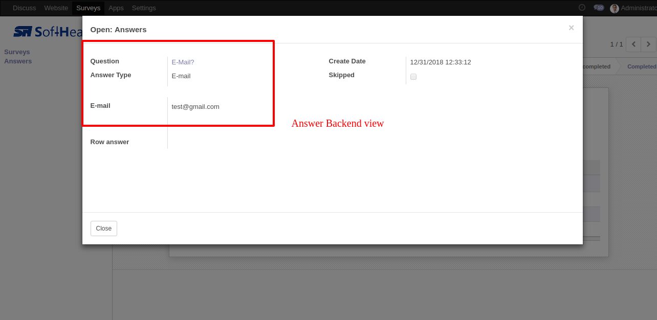 The question-answer 1 form view.