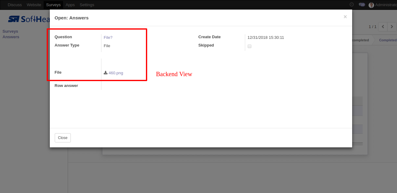 After press "Submit Survey" it stores QR in the survey, QR Field in backed looks like below.
