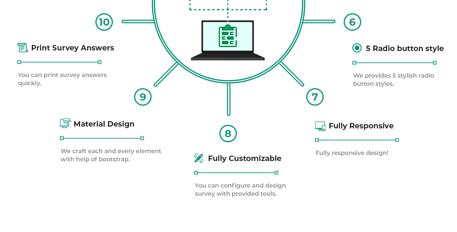 You can customize your Questions and Answers like bootstrap grid system. This feature will help to display your survey form more clean and attractive.