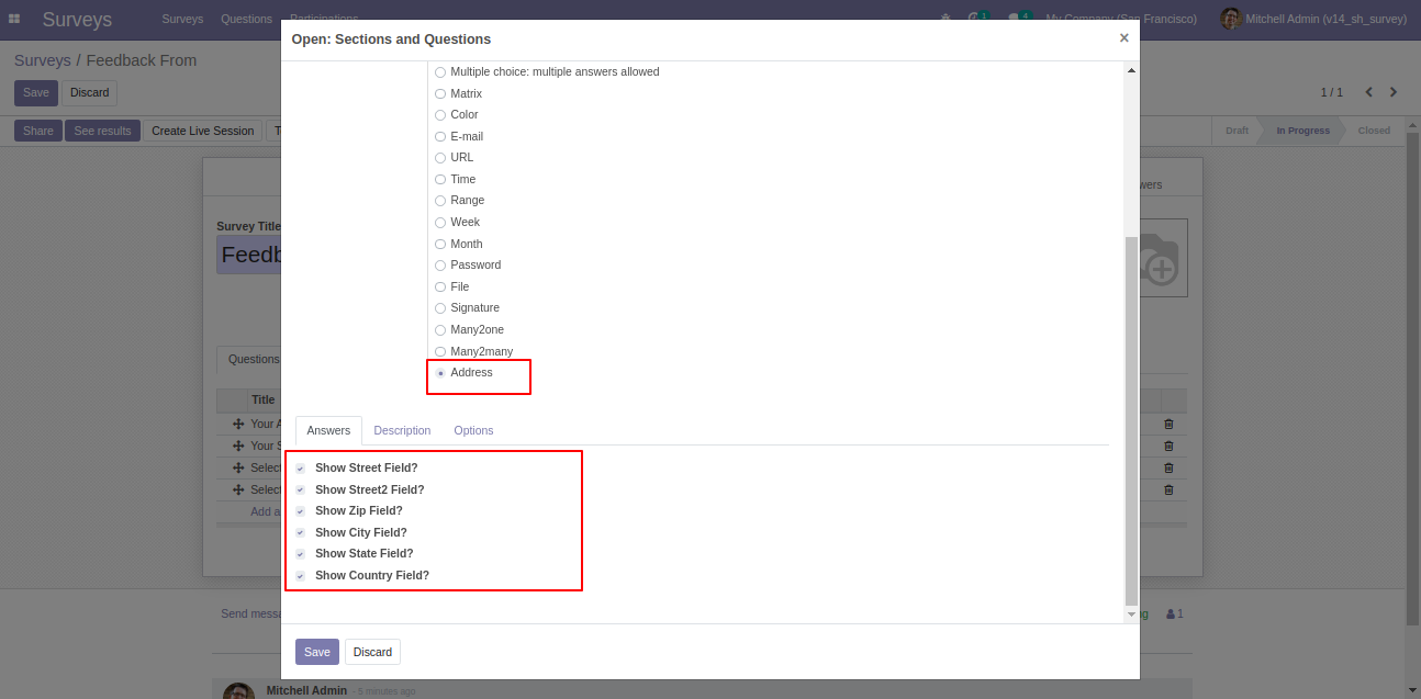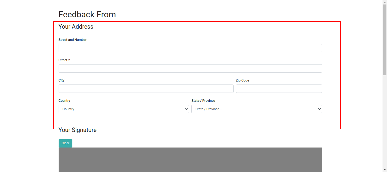 Address option in survey form.