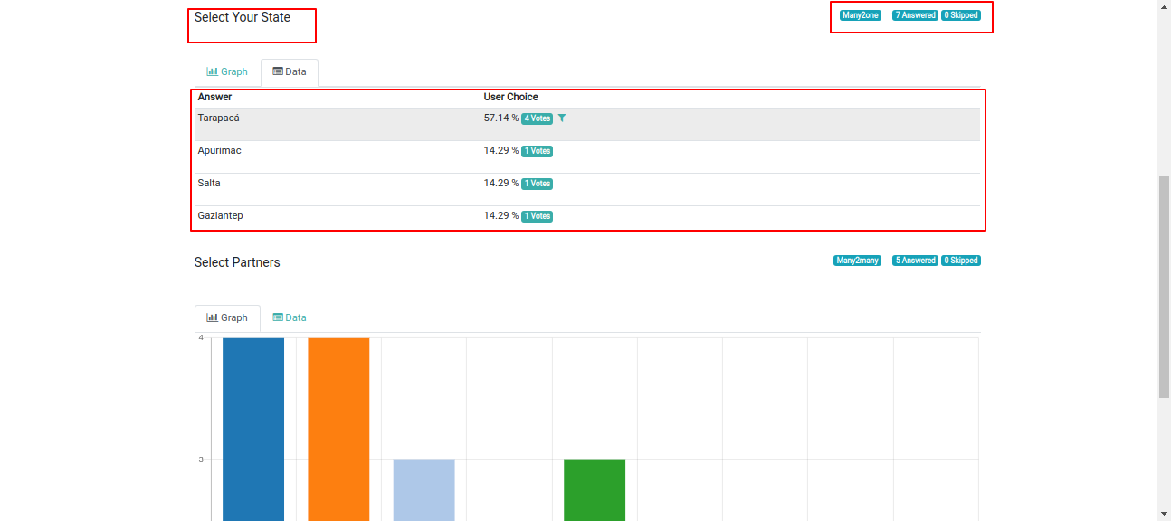 The custom matrix in the answer list view.