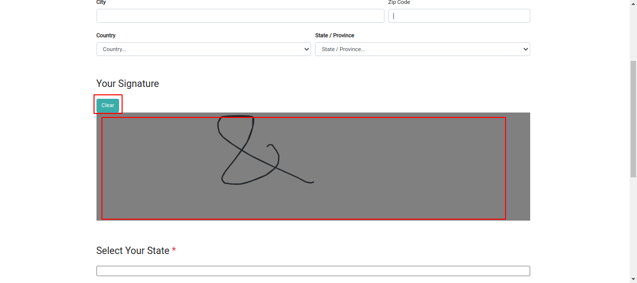 Signature option in survey form.